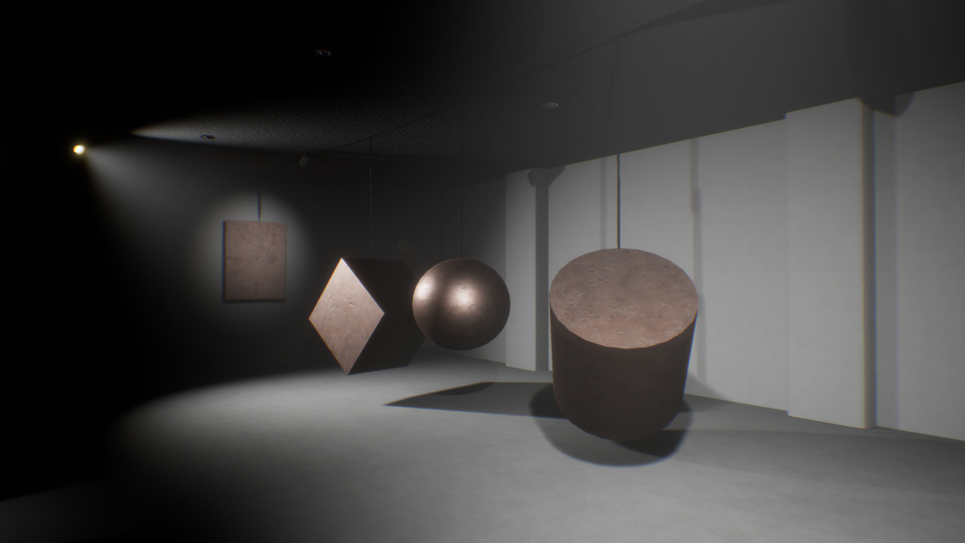 "Four Movements" is a music album constructed in video game space. The project consists of several navigable environments (an empty club, a loft residence, an 'open world' intersected with a modernist grid, etc.) where the virtual participant can perform listening.